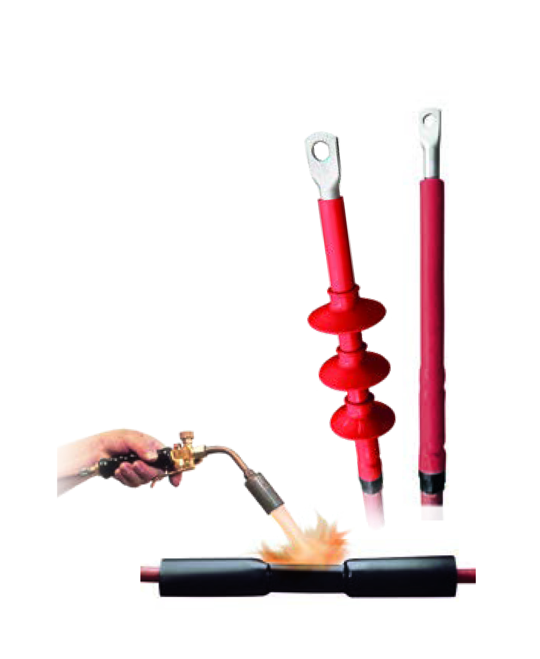 熱縮式終端頭可於安裝後立即投入運轉,包裝效率高且可靠性強。其高收縮比可擴大應用範圍,並減少庫存套件的數量。中壓電纜配件設計的首要課題,是避免電場集中於遮蔽層切割處。藉由使用含有金屬氧化物、具非線性特性的聚合物材料,可在不增加終端體積的情況下達到最佳的電場分佈。電場應力控制元件可採用直接套覆於電纜端部的熱縮式套管,或以外被覆製成的擠製層來達成。