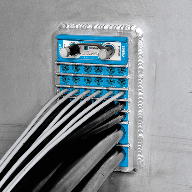 Roxtec develops, manufactures and delivers flexible sealing solutions for cable and pipe penetrations. Roxtec modular-based transits are used for cable sealing and pipe sealing in numerous demanding industries and projects worldwide as the seals provide certified protection against multiple risks, including fire, gas and water. The Roxtec invention for adaptability, Multidiameter™, is based on sealing modules with removable rubber layers and allows for a perfect sealing, regardless of the outside dimension of the cable or pipe.